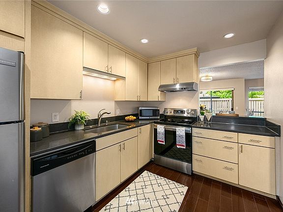 Sunfilled condo in Towne Square with south facing windows, near downtown Bellevue. This spacious and beautiful 2-bedroom/2-bathroom unit offers hardwood floors, modern kitchen with SS brand new appliances( kitchen-aid dishwasher, LG-refrigerator, GE electric range, GE washer dryer, new water heater, new garbage disposal, new insulated windows) and granite countertops. The huge master bedroom with dual closet and large living and dining areas are combined with excellent natural sunlight conditions to lift up your spirit at any time. Covered patio with small garden space for all your gardening ideas. The condo is surrounded by HOA maintained parklike greenbelt. Outstanding location with walking distance to Bellevue Square Mall, Amazon office,Meta, Lincoln Square, Library, & Parks, easy access to major freeways, and highly-rated Bellevue Schools. The quiet community comes with great amenities ranging from pool and clubhouse. Rent includes: 1. 2 parking spots (one reserved covered carport with storage space, one additional uncovered spot), also ample guest parking available. 2. Water. 3. sewer. 4. garbage. Owner pays for 1. Water and sewer. 2. Garbage Renter is responsible for electric. No smoking allowed. Only 1 pet allowed. Lease duration - minimum 12 months.