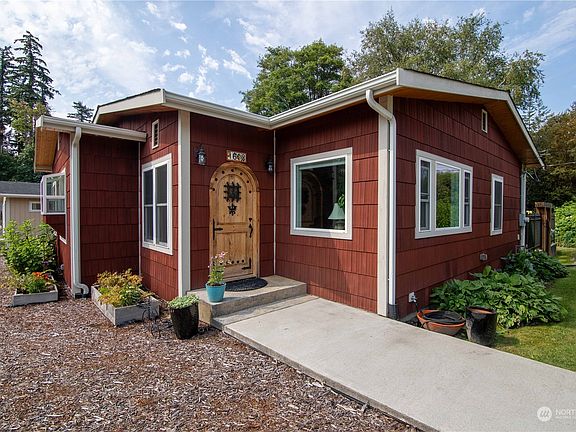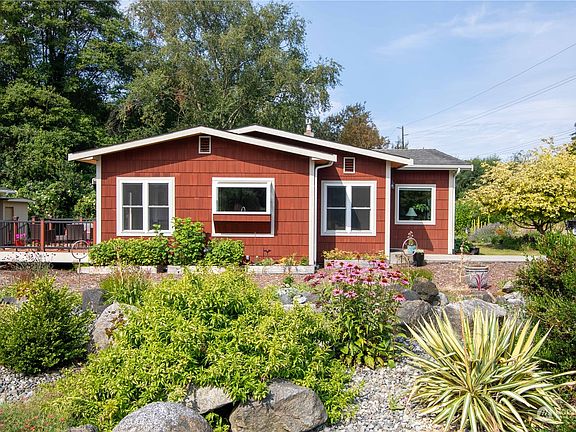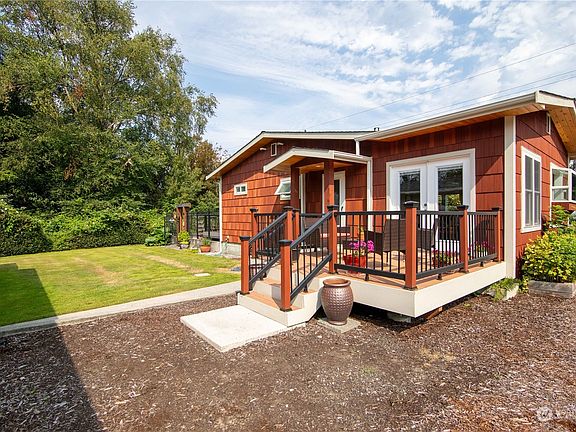 Desirable one level living in this charming 2 bedroom, 2 bath bungalow. Great in town location for easy access to local amenities. Spacious remodeled kitchen features quartz countertops, new cooktop/air fryer stove and newer fridge. Remodeled master bath with tiled shower and separate tub, quartz countertop with double sinks and heated floor. Private deck, patio and garden off of master bedroom. Custom front door. Beautifully landscaped yard with 2 decks for outdoor enjoyment. 1 car garage plus covered carport in addition to shop space, outdoor storage building and greenhouse. Newer siding is hand dipped cedar shakes. New electrical, plumbing & windows. Newer roof. This home has it all - just waiting for its new owners!