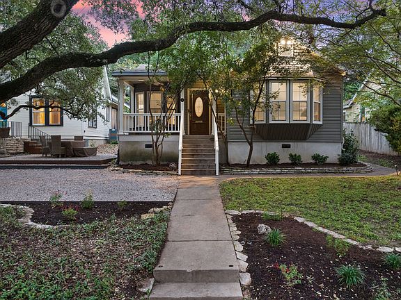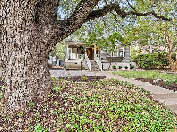 In this charming 3-bedroom, 2-bathroom bungalow, you'll discover a cozy living room with a fireplace. Beyond the kitchen lies a formal dining area with a second fireplace, and a versatile sunroom adds to the home's functionality. The primary bedroom is spacious with a bay window letting in lots of natural light and a walk in closet. The primary bath features double vanities, a jetted tub, and a separate shower. Outdoors, a fenced backyard with a large patio awaits, along with a one-car garage accessible from the alley. Located in the heart of Travis Heights, you'll delight in the easy access to Downtown, South Congress, Lady Bird Lake, and just two blocks from Little Stacy Neighborhood Park.