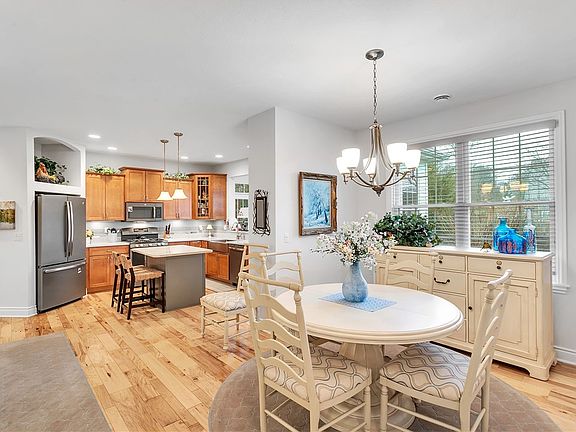 This impeccably maintained patio home with an open floor plan has many upgrades. Beautiful hickory floors lead you from the entry throughout the main living areas. The kitchen has upgraded appliances with a farm sink, breakfast island, abundant cabinet space and a full sized pantry. The solarium can act as a sitting room or breakfast room and leads access to the private patio. The formal living area is accented with a gas fireplace and is open to the kitchen. The laundry room has ceramic tile flooring and includes the washer and dryer, as well as a utility sink for convenience to the 2 car attached garage with additional storage. The master bedroom features a tray ceiling with lighting and 2 walk in closets. The master bath has an oversized double sink vanity, a ceramic tiled shower, separate water closet and a full linen closet. The second bedroom has a double closet while the 2nd bathroom has a ceramic tiled shower and single bowl vanity. Garage has pull down steps to attic space