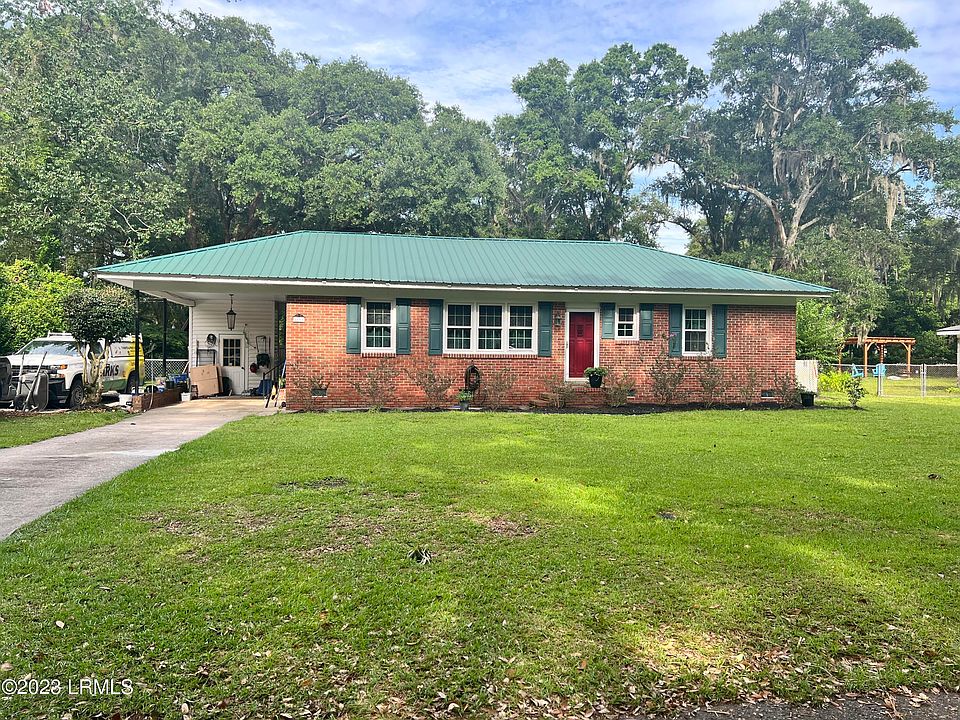 *Interior Pictures by June 28* Ideal location in the desirable Mossy Oaks community, close to Parris Island, Naval Hospital, the Spanish Moss Trail, dog park, tennis courts, and a short drive to downtown Beaufort! This brick ranch has 3 bedrooms, 2 baths, plus a screened porch. Large fenced backyard with a spacious outbuilding with electric. Above ground pool can remain or be removed by seller, per buyer's preference. The house is connected to public water, and there's also a private well for outdoor uses. Beaufort Memorial is nearby, along with pharmacies, restaurants and other retail. One of the closest neighborhoods to Parris Island!