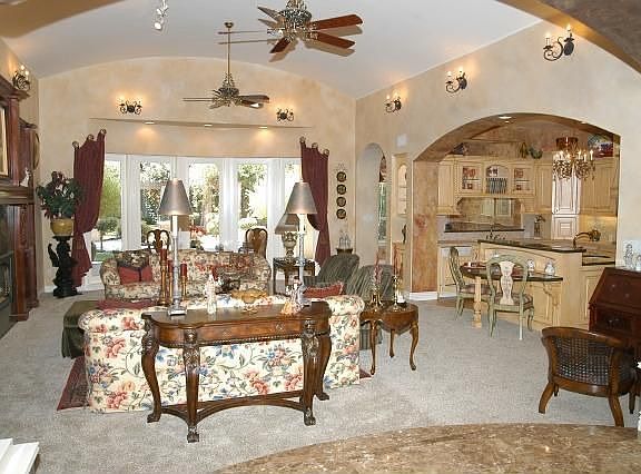 Seven Oaks: Old World French Country, gated community!Custom builder?s own home on large corner lot with beautifully manicured park-like grounds. 4 bdrms, 3.5 baths, split-wing plan w/Great Room.