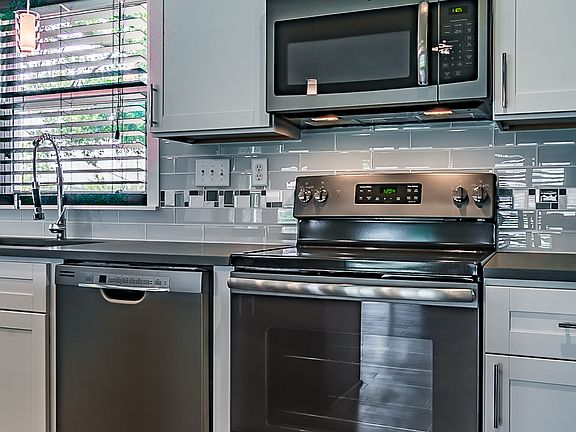 - Appliances: Refrigerator, Electric Cooktop, Dryer, Microwave, Washer, Stainless Steel Appliance(s), Range/Oven-Electric
