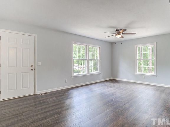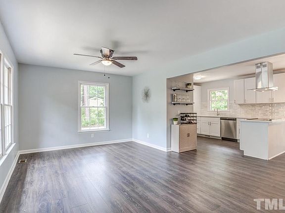 Renovated ranch in the heart of Garner! Walk into what feels like a brand new home. Spacious open floor plan. Large family is light & bright, flows in kitchen. All white kitchen has quartz counters, white cabinets, ss appliances. Kitchen flows into dining area that has big picture window to enjoy backyard views. Master bedroom has his & her closets, bath has custom tile & large w/in shower. 2 good size secondary bedrooms. Large deck, storage, laminated floors, walking trails. Move in ready!