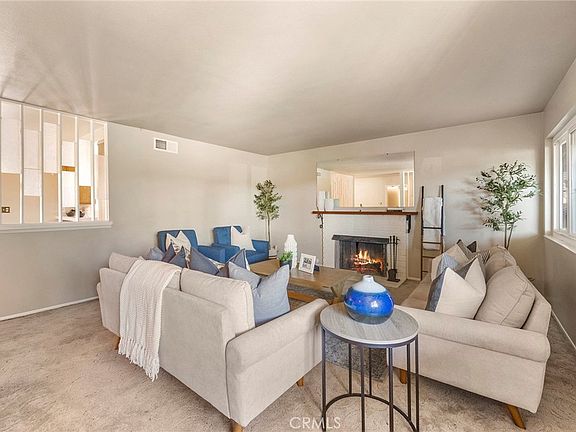 This charming single-level, 4-bedroom, 2-bathroom home encompasses over 1,467 square feet of living space, and is located on a large 8,527 sf lot, offering plenty of room with tremendous potential. Its inviting curb appeal features artificial turf in the front lawn, a flower bed with brick accents, and a flagpole. A detached 2-car garage is conveniently connected to the house via a breezeway. As you step inside, a spacious living room welcomes you with an inviting fireplace. A hallway leads to all four bedrooms, one of which showcases original hardwood floors. The master bedroom boasts an en-suite bathroom and two separate mirrored closets. The interior is newly painted and benefits from dual-pane windows. The dining room flows seamlessly into the adjacent kitchen, complete with a breakfast counter, dual ovens, and an electric range. Beyond the dining room lies an expansive sunroom with tile flooring and additional storage. The sunroom’s square footage is not included in the 1,467 sq ft reported on the home, so it adds additional living space. The generous outdoor area features a brick walkway, fruit trees, a garden, patio cover, covered sitting area, gardening shed, block walls, and plenty of space for outdoor entertainment or the potential addition of an Accessory Dwelling Unit (ADU) or a pool. The home's location offers quick access to local amenities, enhancing its desirability as a comfortable and versatile living space.