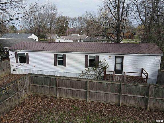 Enjoy the privacy of this 2-bed, 1-bath mobile home with a fenced yard. Features include a spacious eat-in kitchen, metal roof, and open-faced pole barn.