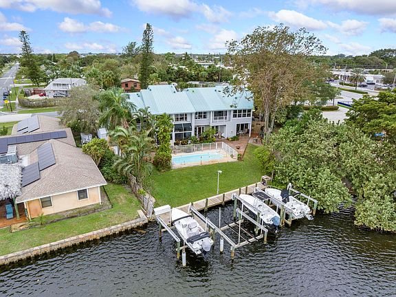Calling all Boaters!!! Come watch the manatees play & fish jump while cleaning the boat from your deeded dock complete with a 16K lb. lift! Yes... this is your chance to own waterfront property with intracoastal access for under 600K! Need a place for your rods and gear; how about a 2 car garage! Need 3 bdrms for the growing family; no problem! Prefer a pool to cool off in after a day in the boat; let's go! The possibilities are endless here and nowhere will you find THIS lifestyle in PB County for under 1 million! Welcome to the charming enclave, Flagler Cove. Comprised of only 4 townhomes, each with their own deeded dock and boat lift. 1 fixed bridge (Northlake), full hurricane protection, recent 100K reno. by HOA for docks and hardie board siding, & a poured concrete layer between each unit add to the appeal of this waterfront gem! All 3 bedrooms located upstairs and most of the rooms have serene water views. HOA covers exterior maintenance and insurance, lawn, and pool service. Come see for yourself what this unique property has in store for your family before she's gone!