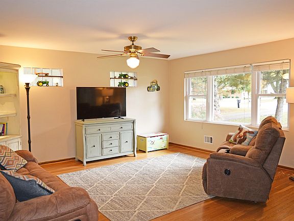 Hurry! You don't want to miss this great ranch style home on over a half acre in Darmstadt! This Bedford stone home features three bedrooms, two baths, and a full basement! Upon entering you will notice the beautiful hardwood floors and lots of natural light in the living room. Nice sized dining room with enough space for your large table! The kitchen has ample cabinet and counter space and includes all appliances. Three bedrooms and a full bath round out the main level. The full basement has so many uses! There is an office/ fourth bedroom with closet and built in shelving. The family room is carpeted plus a tiled area already plumbed for a wet bar. The second full bath is in the basement as well. Move over to the unfinished side and storage won't be an issue! 13x12 room that could be a workshop space also. There is an area for laundry with washer and dryer included and a utility sink. Heading outside you will see the extensive landscaping, a patio area, fire pit, and place for a hot tub! Two car attached garage and a 12x10 storage shed. Per seller: Furnace and AC new in 2019, blown in insulation in attic 2019, New Roof 2024. Hurry, immediate possession at closing so you can be moved in before the Holidays!