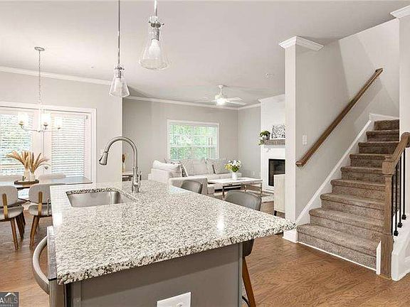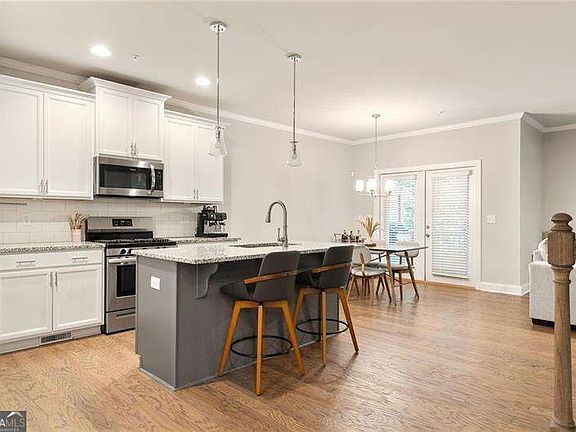 Tucked inside a quiet, gated community in Marietta, this newer construction home delivers the perfect mix of comfort, convenience, and calm. Just minutes from the charm of Marietta Square, the location makes everyday life easy without sacrificing peace and privacy. Step inside to warm hardwood floors and an open main level that feels spacious and welcoming. The living room centers around a cozy fireplace and flows effortlessly into the kitchen and dining area, creating a space that's just as great for relaxing as it is for hosting. The kitchen is the heart of the home, featuring a large central island, stainless steel appliances, granite countertops, gas range, and abundant cabinetry to keep everything within reach yet out of sight. French doors off the dining area lead to a private patio surrounded by lush greenery, giving you that tucked-away, treehouse feel. Whether it's coffee in the morning or wine in the evening, this space is made for slowing down. Upstairs, you'll find two generously sized guest bedrooms, a full bathroom, and a laundry room that keeps chores contained. The oversized primary suite is a true retreat with space to unwind, a large walk-in closet, and a spa-inspired bathroom with double vanity, walk-in shower, and separate water closet. There's more to love; the huge unfinished basement is already stubbed for a bathroom and ready for whatever you need next, think home gym, guest suite, office, or media room. Enjoy socializing with neighbors at the community pool and let the pups run free at the dog park. Conveniently located near I-75, this one checks all of the boxes and then some!