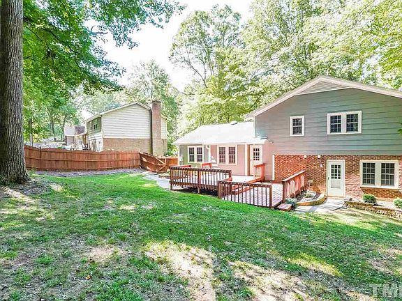 Built in 1977, this Cary two-story home offers gas heating, quartz kitchen countertops, a walk-in master closet, a den, a fireplace, a deck, backyard storage shed, and off the street parking.