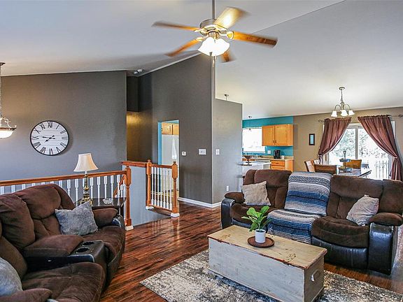 This charming home is in a convenient location and less than 3 minutes from highway 21. The home has vaulted ceilings and an open-concept living room, dining room & kitchen. The kitchen has an abundance of counter and cabinet space, also including a pantry. The oversized dining area is perfect for entertaining, with additional space leading to the deck and patio. The large living room boasts a gas fireplace. Just down the hall a total of 3 generous bedrooms, including a master suite and an additional bathroom. The lower level is partially finished, the homeowners petitioned the lower level in a way so it could be used as additional sleeping space, office spaces, additional living space, storage, etc. A bathroom was added with a tub and shower, the bathroom is not completely finished. The two-car garage and additional parking space in the driveway seem like a dream for many homeowners in town. Security cameras are included in the sale, with no monthly fee.