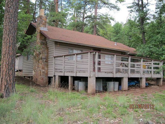 UNIQUE , LOG-SIDED CABIN ON A CORNER LOT, WITH THE DECK BUILT TO LOOK OUT OVER NAT. FOREST. YOU HAVE THE FEELING THAT THE BACKYARD GOES ON FOREVER. WHAT A FIND, BEING SOLD AS IS, FULLY FURNISHED. PROPANE REFRIGERATOR & STOVE, NICE SIZE KITCHEN AND EAT IN DINING AREA. WONDERFUL KNOTTY PINE WALLS & CEILINGS IN THE GREAT ROOM, WITH STONE SURRONDING THE FIREPLACE,2 ROOMS BEING USED AS BEDROOMS HAVE ARMORIES CLOSETS, NOT BUILT IN. LOFT HAS PLENY OF ROOM FOR SLEEPING AREA, LOFT IS UNFINISHED. GREAT TALL TREES, WONDERFUL VIEW, PLENTY OF ROOM FOR HORSES AND RV PARKING. NICE SIZE MUD ROOM WITH SEATING. THIS ONE PRICE TO SELL , CALL NOW