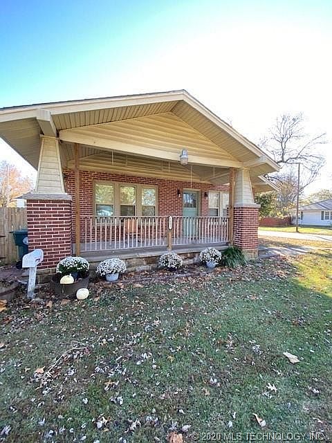 Adorable brick bungalow sits on a large corner lot on the east side of Muskogee, featuring original hardwoods & updated windows, 2 bedrooms, office could be used as a 3rd bedroom, stairway to attic. HVAC & Roof approx 10 years old. Privacy fence around property. Detached 2 car garage. Additional driveway to backyard. Large yard gives lots of room for kids and entertaining. Playhouse not included.