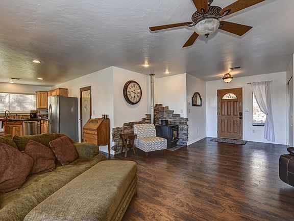 From the inviting front entry to the wonderfully spacious yard (almost 1/3 acre), this property offers a private retreat with a charming, cozy home that has been stylishly remodeled. Open floorplan complimented by newer flooring & kitchen featuring newer cabinetry & countertops plus dining area w/access to deck & backyard, Roomy master suite w/walk-in closet & updated bath. Two guest bedrooms & updated guest bath. Fantastic outside space for enjoying Prescott's lovely climate with large deck & fully fenced yard w/fire pit and separate dog yard, chicken coup & quaint storage shed. Two car garage w/laundry hookups. Great Prescott location at the end of a cul de sac near shopping, schools and medical. No HOA!