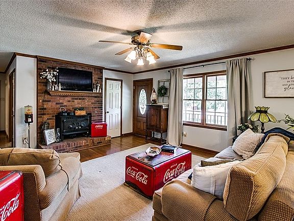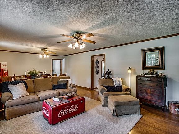 Attractive rambling ranch w/ large rooms and tons of outdoor living space! Home features a 55 foot covered front porch, large open living room/dining, attractive kitchen w/ solid wood cabinets, lrg master suite with great sized closet and master bath, hardwoods, attractive moldings, great secondary bedroom sizes, private back den, office, oversized dbl garage. Home has great deck & leg brick patio in fenced backyard. New paint. Tons of space at great price! 100% USDA financing eligible!