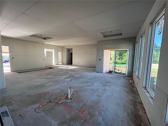 New ranch floor plan on nice level cul-de-sac lot. Very open plan from the kitchen & breakfast room and into the dining & living room. Super nice kitchen with a large 6' x 5' walk-in pantry, center-island and custom built cabinets. There is a wall of windows across the back in both kitchen and living room. A sliding glass door off the eat-in area leads out to nice covered deck. Redesigned master bath includes a large corner glass shower, double vanities plus a make-up vanity. 10 foot ceilings in living room for an added open feel. Hardwood floors through-out the main level, bedrooms are carpeted and the master bath is tiled. Home is framed with an expected completion at mid October Buyer can choose all of the finished that include flooring, lighting, plumbing fixtures, paint and just about anything else. Please check out the virtual tour link for the latest ariel of the subdivision that includes the new water lots.