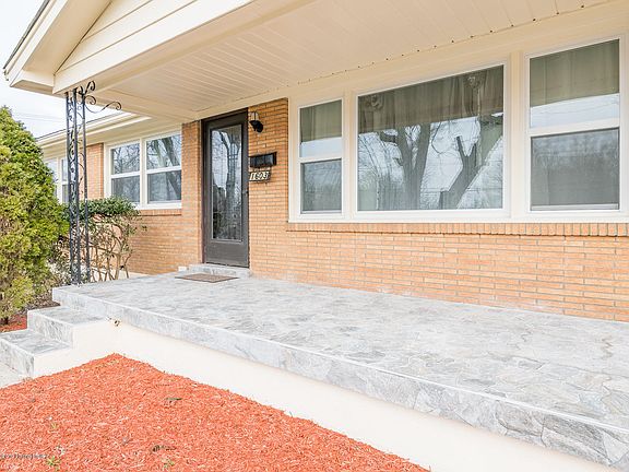 You found the one that has it ALL! Corner lot with INGROUND POOL, 3-4 bed, 2 full bath brick ranch is your Oasis from the World. Step inside to a large living room with marble fireplace, spacious kitchen w/glass backsplash, NEW Cabinets, NEW SS appliances and dining area with oversized tiles. Large hall bath has vessel sink, floor to ceiling tile and beautiful custom shower with glass doors. 3 bedrooms on the main level and could easily be a 4th in basement. The fully tiled basement also has a HUGE family room, perfect laundry room and another fantastic full bath with shower. Attached garage leads to a sun room that leads out to the INGROUND 16x32' pool with new liner & piping, as well as the large patio area & carport. New Energy Efficient Windows, HVAC, Water Heater. Lots of Updates!