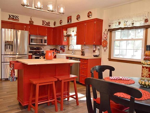 This home has a heartbeat for excitement and charm! Tired of boring oak cabinets & beige walls? Sometimes you just have to paint your Kitchen Red.... Amazing Remodel! Not an ounce of carpet anywhere! Hardwoods in fantastic condition. Owner's Suite has attached bath. Basement finish w/ 2nd Kitchen, 3rd Bath & Recreation Rm-perfect for separate quarters on garage level, or a great hang-out room! Oversized Deck & Fenced Yard. Appliances stay, including W/D. Great Gladstone Location close to shops & grocery.