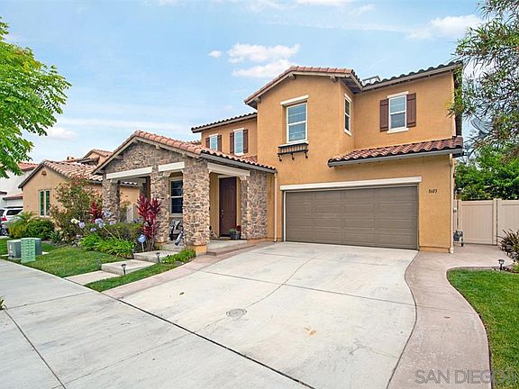 Stunning home located at Monticeto Village in Otay Ranch. First floor bedroom features full bath & walk-in closet. This beautiful entertainer's dream boasts a formal living area, dining room, large eat-in kitchen with spacious island that opens to a cozy family room with fireplace. Large master bedroom & bathroom with walk-in closet. Enjoy expansive outdoor living, covered patio, outdoor kitchen & numerous fruit trees! Amazing clubhouse facility. Close to schools, trails, freeways, shopping & restaurants. This stunning home situated on a cul-de-sac street is turnkey! As you enter you are greeted by a charming living room that leads opens to the dining room with a sweeping cathedral ceiling. The generous sized eat-in kitchen boasts recessed lighting, gorgeous granite counter tops, sleek stainless steel appliances, and rich espresso-hued cabinetry with a large island that offers additional storage and seating that opens to the family room with fireplace. Large windows bask the home in an abundance of natural light. There is a bedroom, full bathroom with dual vanities and walk-in closet located on the main floor. The first floor also has a half bath for your guests! The remaining bedrooms are upstairs including the spacious master suite complete with its own en-suite bathroom featuring dual vanities, a relaxing soaking tub, separate walk-in shower, and a huge walk-in closet. The third bathroom also has dual vanities. Enjoy the convenience of a second floor laundry room close to bedrooms. The outdoor living area is an oasis with large stamped concrete patio covered by a pergola and BBQ island, yet there is still grass and area to play and run with the pets. As an added bonus there are fruit trees! Peach, guava, plum, lemon, apple, pomegranate, apricot and persimmon! Unsurpassed community amenities include a sparkling pool and spa, hiking and biking trails, BBQ facilities, tennis court, boccie ball court, a playground, fire pit, gym/exercise room, and a clubhouse recreat