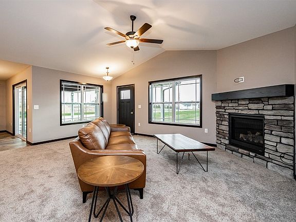 Check out Abode’s newest neighborhood… Foxtail Ridge! This unit is the former model home and is the Hampton II floor plan featuring an enclosed 3 seasons front porch, an open floor plan, gas fireplace, kitchen island w/breakfast bar, walk-in pantry, & vaulted ceilings. Spacious primary bedroom suite has dual sinks & walk-in closet. 2nd bedroom & another full bath plus main floor laundry complete the main floor. Th walkout lower level is finished with a full bath, 3rd bedroom, and family room, leaving plenty of unfinished storage space. The builder selections are from a high quality group of products, including Adura plank and tile flooring; Onyx vanity tops in the bathrooms; a stone fireplace with floating mantle; and more. This unit features an upgraded tile primary bath shower too! This building has a passive radon system installed. $350 association start-up fee.