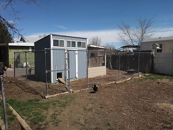 This amazing home on a .5 Acre lot has multiple outbuildings and is the perfect yard for entertainment! Enjoy this huge corner lot, zoned for agriculture in the Lincoln Park area, with large trees and completely fenced for pets and security. This home has a large covered front porch and sitting areas in backyard that has lots of large trees for privacy and shade. Features include 3 bedrooms, 1.5 baths and an unfinished basement that has outside access - and could be finished for additional living space. The large kitchen allows for a dining area and has tons of storage. Living Room features large window with views and wood burning stove. Upgrades include plumbing, water heater, irrigation pump and sprinkler system. Features include Hot Water Baseboard heat, Evaporative Cooling, and Mini Split System for Heating and Cooling. 5 Shares of DeWeese Ditch are included for irrigation, and the ditch along the west side of home provides reservoir water seasonally. There are several outbuildings including a detached garage with space for 3 cars + a workshop, a shed that has been converted into a home gym, a smaller shed that can be used for wood and/or gardening supplies, and a chicken coop that can house up to 20 chickens. This property is a one of a kind that with acreage, wildlife, agricultural zoning, and privacy but you're only minutes from shopping and other amenities of the City. All with modernized living in this great home!