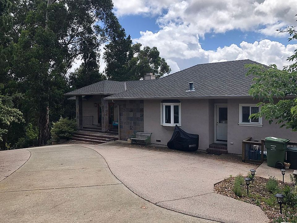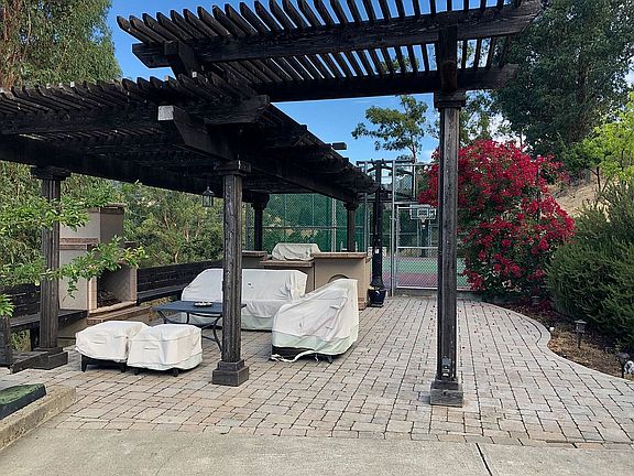Perfect family home. Secluded off the road on 1 acre, this home boasts a stunning view over Reliez Valley. The master bath and kid's bathrooms are being remodeled and will be ready to enjoy in August, 2019. There are Anderson windows and doors throughout the home with maple hardwood floors in the main living areas. The kitchen offers stainless steel appliances and granite countertops. Upstairs, the home features a living room, dining room, family room connected to the kitchen and 1.5 bathrooms. There is also a bedroom on the main floor. The downstairs features a master bedroom / bath and two large bedrooms with a shared Jack/Jill bathroom. There are decks off most rooms to enjoy the view. The backyard contains a 60 x 25 fenced sport court with two professional basketball hoops, a volleyball net and industrial lighting for nighttime play. There is an outdoor fireplace, BBQ and seating area next to the sport court. The house is surrounded by trees and offers quiet relaxation. The home is a mile from Springhill Elementary and Acalanes High School with close proximity to downtown Lafayette and freeways. Pets are okay with approval in advance. Rent include utilities (PG&E, garbage and sewer). Owner pays for gardener, PG&E, trash and sewer.