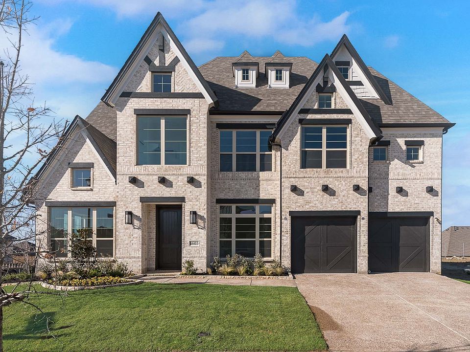 New Grand Home in Monterra - master plan neighborhood w swimming pool, splash pad, trails, park & pickleball courts! Highly sought after Rockwall ISD. This stunning 2 story home is loaded with upgraded features. The huge chef's kitchen is ready to entertain w large island with waterfall sides, tons of counter space, Shaker cabinets, pots & pans drawers, a Farm sink, stainless steel appliances, commercial style 8 burner gas cooktop, pot filler, double ovens & trash can drawer. The Open concept family room has wood floors, Dry Bar & a linear 2 story fireplace with tile surround to ceiling. Downstairs Media Room - Formal Living or Home Office. Custom features include tons of wood floors, 8 foot doors, free standing tub in Primary Bath, frameless glass shower w deco tile, rectangle sinks, & convenient door to laundry room. Downstairs Guest Suite. Upstairs Gameroom, Media Room & Bonus Room. Covered Back Patio with gas line for BBQ & cedar beams. Energy Star Partner w R38 & tankless water heater. Convenient location w lots of shopping & dining options near Lake Ray Hubbard.