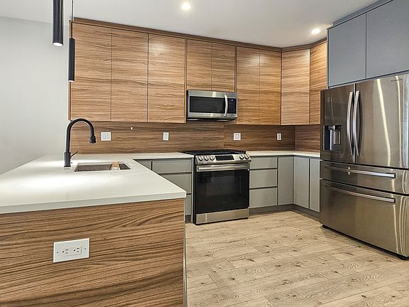 The kitchen is equipped with brand-new stainless steel appliances, while the home also offers in-unit laundry, central air, and a large private backyard for outdoor enjoyment.