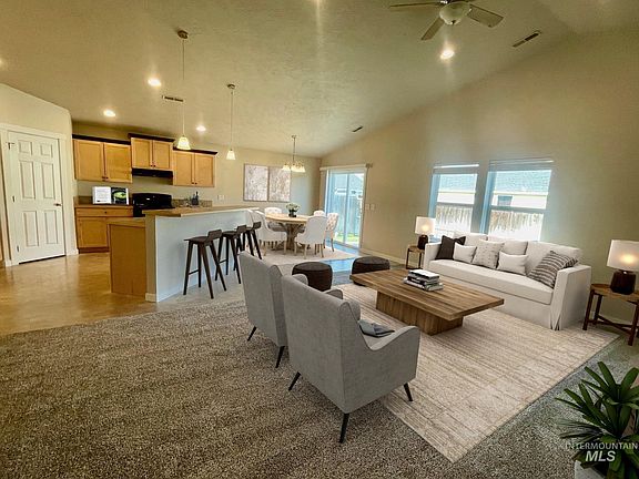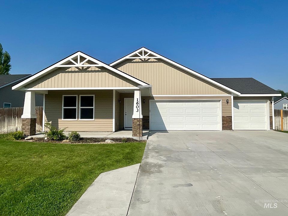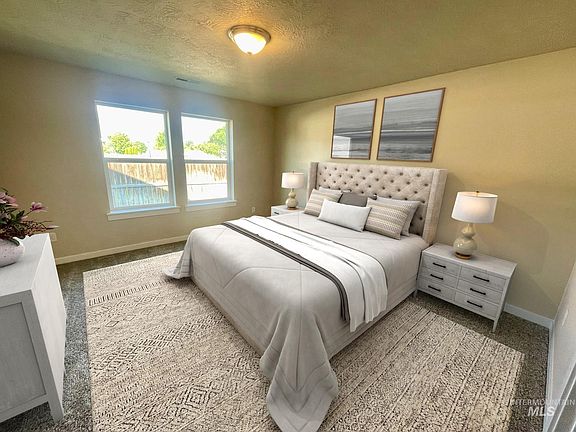 Welcome to this elegant home where luxury meets functionality. A covered front patio welcomes you outside, while inside, a spacious kitchen boasts an oversized island beneath high vaulted ceilings, perfect for gatherings. The master suite features a large walk-in closet and dual vanities in the luxurious bathroom. Beautiful cabinetry adds sophistication throughout. Outside, enjoy the expansive yard for leisure and relaxation. Experience unmatched comfort and style in this distinguished residence.