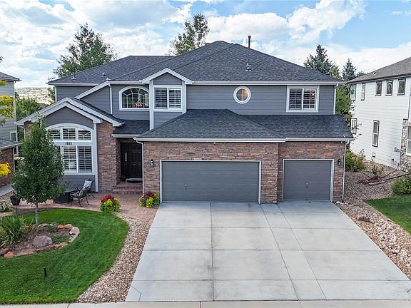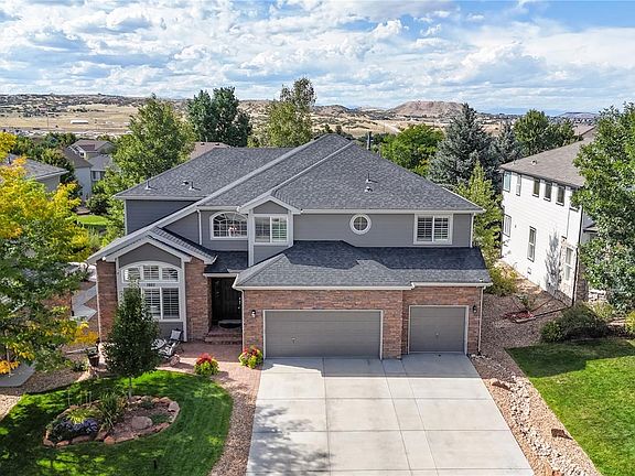 Wow!!! Discover your dream home in the prestigious Plum Creek golf course community! This stunning residence boasts gleaming hardwood floors, elegant plantation shutters, and soaring vaulted ceilings throughout the main floor. The family room captivates with a floor-to-ceiling custom stone fireplace, bathed in natural light from oversized windows. The gourmet eat-in kitchen, recently remodeled, features granite counters, a custom backsplash, cooktop, double ovens/microwave combo, and a spacious island, perfect for entertaining. Unwind in the expansive master suite with his-and-her closets and a luxurious, updated bathroom. Work from home in the private office or host movie nights in the thrilling theater room with projector and leather movie theatre style seating included. Amazing bonus space includes a pool table with theme based lighting. Step outside to a Trex deck and a professionally landscaped yard, ideal for enjoying Castle Rock’s vibrant lifestyle—think scenic hiking trails, famous incline, concerts in the park, charming downtown festivals, and breathtaking Rocky Mountain views. With a 3-car garage and abundant natural light throughout, this home is a masterpiece of comfort and style in a community that offers golf, outdoor adventures, and small-town charm. Buyer to verify all.