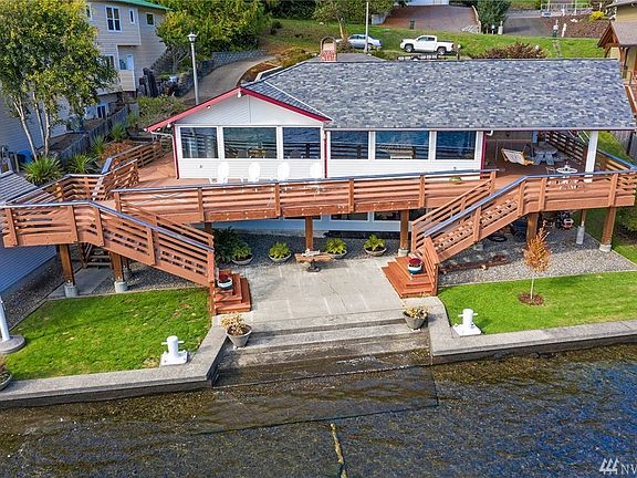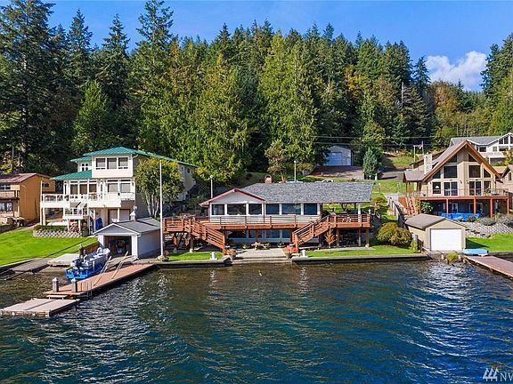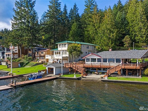 Sited on 100 ft of sunny southern Summit Lake shoreline is a never-before-available custom home. Entering the home, a wall of windows and a spacious open concept living area greet you. The massive dual slider glass doors open to nearly 400 sq ft of covered porch. A pristine boat house with working rails, dock with removable float, bulkhead spanning the shoreline, daylight basement, and featuring 1,819 sq ft of decking, including a massive waterside dining area--this is an entertainer's paradise.
