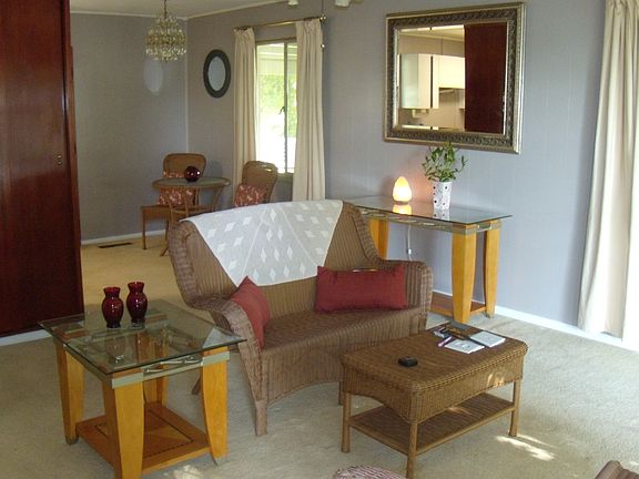 Cozy 2 BR, 1 bath ranch close to schools & shopping. Open concept; Freshly painted; Built in dressers & shelving; Appliances stay; Carport; Fenced yard; Covered patio; Private asparagus patch!