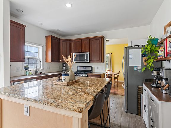 This spacious property has so much to offer and is just minutes from Vermont's best recreation. The 3 bedroom 3 bath home has a great layout, a 2 car garage with direct entry into a large mudroom and kitchen. The kitchen boasts a central island, energy efficient appliances including gas range, a pellet stove and large glass doors offering beautiful natural light and direct access to a fully fenced yard perfect for pets. Beyond the kitchen is a seperate dining room, a large living room with mini-split A/C, a powder room and formal front entry opening out to a covered front porch. Up the stairs, you'll find a primary bedroom bathroom suite with beautiful views of Camels Hump and the Winooski River, mini-split A/C, two additional bedrooms, a second full bathroom and second floor laundry area. This home also has interior access to a full basement for storage and work out space. Beyond the home and fenced yard is a 1120 sq ft secondary building fully equipped with its own heating system, water heater, and water filtration system, a large 20x20 heated utility space currently set up as a commercial kitchen, and a 720 sq ft recently finished 1 BR in-law apartment. The apartment is bright and airy with large windows and beautiful views. It has its own pellet stove, kitchenette with full-sized refrigerator, gas stove-top and a bathroom with shower and laundry. Out the back door is expansive yard space, garden space, and a short walk down to the Winooski River. Showings begin 4/22.