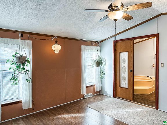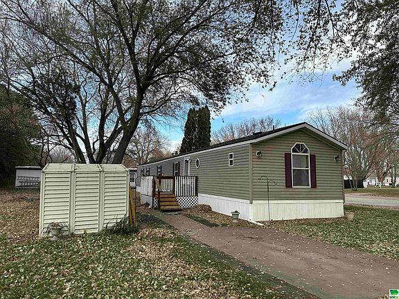A new affordable home for the Holidays! This well-maintained mobile home sits on a corner lot at the edge of the park and has a patio area as well as a shed for storage. The owners made two bedrooms into one large room, but it could easily be made into a 3-bedroom again. The kitchen has TONS of cabinet space and counter space, and the Primary Bedroom has a large tub as well as a shower in the en suite bath. Come see this nice home today!! All buyers must apply with the mobile home park association management.