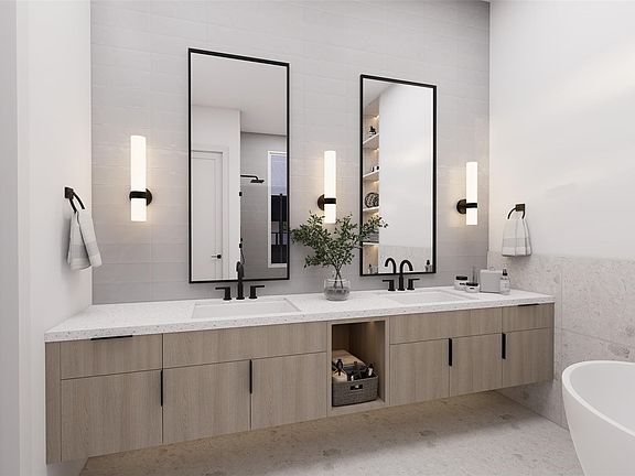 Wet barOversized waterfall islandCustom cabinetrySpa-inspired bathroomsOpen-concept layout
