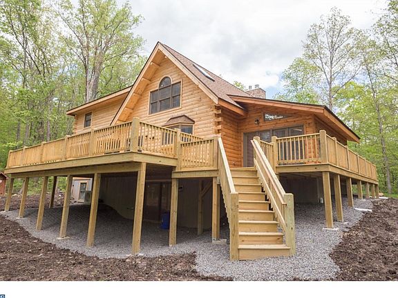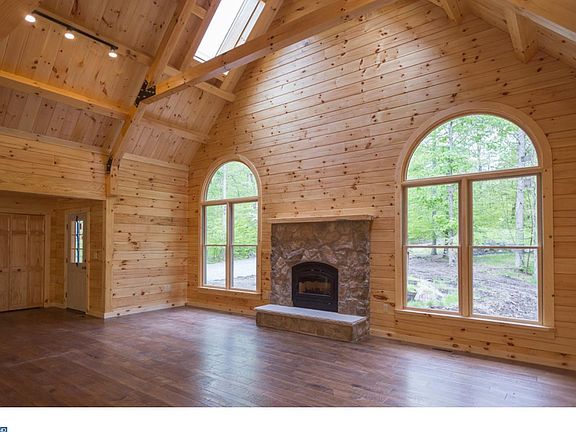 This spectacular contemporary custom built log cabin home is situated on a 2.85 acre site situated at the end of a cul de sac overlooking woods in Green Lane just minutes from the park! Many custom features! The spacious living room features a vaulted two story ceiling with a stone fireplace perfect for family gatherings! Open concept granite kitchen with maple cabinets with sliders doors leading to rear deck area! Adjacent to the living room is sunroom with skylights and radiant heat floors. There is also a bedroom with full ceramic bath also located on this level! The second floor features a loft area, plus the main bedroom with walk in closet and full ceramic bath with walk in shower! The finished lower level walk out features a family room with wood stove capabilities, oversized laundry room and another bedroom with full ceramic tile bath! This is a must see home! Schedule your appointment today!