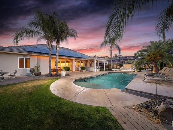 This exceptional home blends luxury living with outdoor entertainment. It features a spacious 4-car garage with commercial tile, Shop/RV parking, and elegant granite countertops throughout. The master bath offers a walk-in shower and garden tub, while a Murphy bed provides versatile guest accommodations. The backyard is an entertainer's paradise with a BBQ area, pool, outdoor kitchen, pergola, deep pit, horseshoe pit, basketball area and a dog run. The home also includes a central vacuum system, dual AC units, an alarm system and new auto sprinklers in the front and back. Additional features include a storage shed, woven wood blinds, and two safes for valuables. This property offers a perfect mix of luxurious living and outdoor leisure. Don't miss the opportunity to own this dream home!