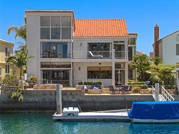 This magnificent waterfront home 16031 Santa Barbara Lane offers a rare opportunity to reside in the 24-hour guard-gated privacy of Harbour Coves/Faire Marin, offering a coveted 55 bay frontage with a private 40 dock. This home boasts 5 bedrooms and 3 bathrooms with over 3500 square feet of interior living space, a large second-floor waterfront balcony, with a three-car garage all nestled on a spacious 5724 square-foot lot. Capitalizing on the breathtaking panoramic water views, enjoy amazing sunsets and Catalina Island views. Expansive waterfront backyard leading to your very own private dock. This home has it all, from the fireplace to the cathedral ceilings, a large formal living room, a dining room, a family room, a gourmet kitchen, and a massive master suite, with floor-to-ceiling windows. Boat, bike, or walk to unlimited amenities such as dining, shopping, and numerous recreational activities. The home is close to the Huntington Harbour Mall with restaurants, banking, and Trader Joes. Boat to Peters Landing for endless activities for all ages. Its time to start your journey in the exclusive waterfront living of Huntington Harbour.