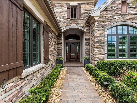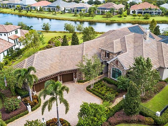 This meticulously "CUSTOM DESIGNED" "smart home" sits on a private OVERSIZED cul-de-sac lot that claims an amazing and rare 300 feet of lakefront views within the exclusive gates of The Lake Club. You, your family & friends will value and make the most of this EXCEPTIONAL outdoor living space that offers a well thought out entertaining area that includes LED lighting over lanai beams, surround sound, newer thermal pool equipment, pool waterfall, a heated lanai dining area and separate gas-controlled fireplace nestled next to the outdoor kitchen and custom cabinetry. All this in addition to over 4800 square feet of interior living and an over-sized 3 car (plus) garage. Within the 4800 square feet of interior living you will be pleased with the DETAILS of expanded room sizes, custom closets, custom decorative wood shutter system, Hurricane impact windows & whole house backup natural gas generator and a Chefs kitchen that includes Wolf appliances and center island prep station. From fixtures to custom finishes, this home will not disappoint you. Ask your Realtor for the complete list of features this home offers and schedule a private showing to see it today. The gated community of the Lake Club, accessibility to multiple golf courses, tennis, world class shopping, entertainment, restaurants, theater(s) AND MORE is a winning combination for the lifestyle buyer.