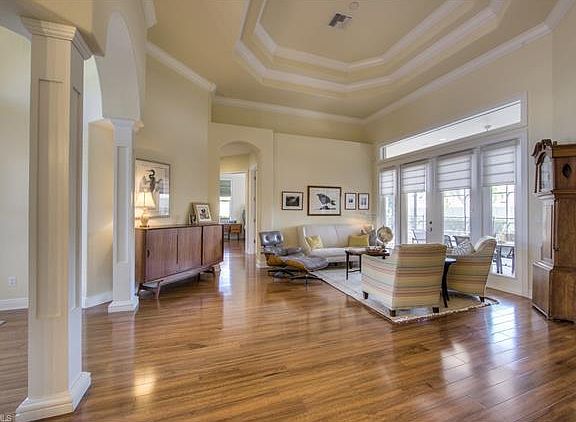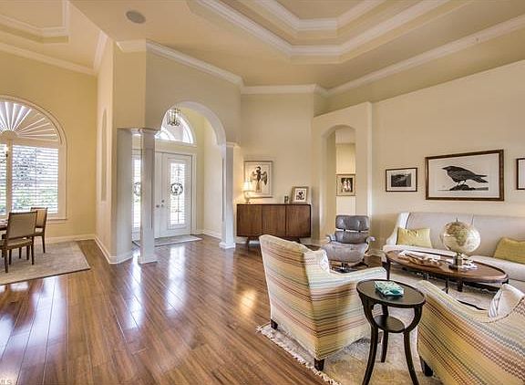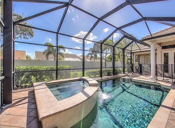 Close to the beaches of Sanibel Island and the causeway...Inviting 4 bedroom, 4 bath with bonus den/office with open floor plan surrounded by mature lush landscaping. This resort style pool home offers many enhanced features from the beautiful kitchen right through to the paver finished pool area which is screened and under truss. Tons of crown molding and a neutral color palette add to the overall charm. Whole home has surround sound, 2 A/C units, all closets have built-ins, including pantry, 8ft- solid core doors, Pavers from the driveway extend up the walkway to the double entry doors.- Great For Entertaining! (Shelving in family room and office does not convey- to be removed)