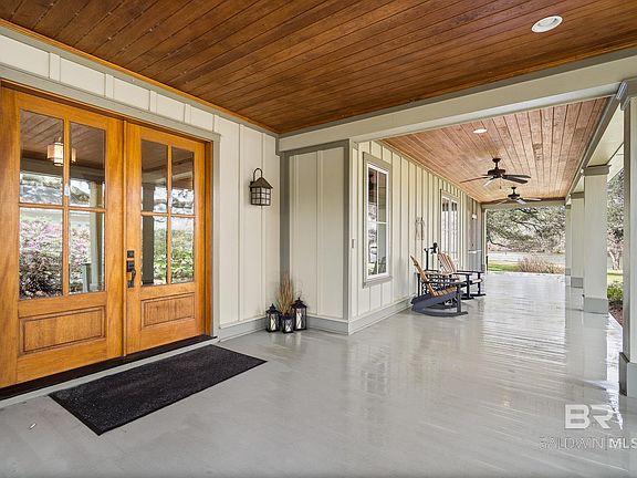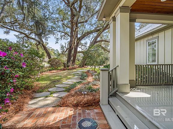 Nothing compares to Southern living among these gorgeous oak trees while sitting on your screened back porch taking in the tranquil views of Fish River! As soon as you arrive, you will notice the wrap-around porch with beautiful tongue and groove pine ceilings, all part of this gorgeous, creole designed home by Fairhope’s own Tom Aiken. Once inside, the amazing, vaulted ceiling will simply take your breath away. The kitchen, chef inspired of course, has Barricato granite, custom cypress cabinets, a large center island, gas cooktop and stainless-steel appliances including a new dishwasher, refrigerator and a hot water dispenser. The primary bedroom is spacious with a lovely en-suite with a separate soaking tub, shower and dual vanities with single sink. The main house has 2 more bedrooms, a full bath, a half bath and an office. Not included in the main square footage is a separate 400 sf. cottage/guest house that sleeps 4, complete with kitchen and full bath...so great for your special guests. There’s a fire pit to enjoy near the riverbank and a boat lift with a dock and new bulkhead on 4+' deep water. New concrete steps and sidewalk lead the way to the updated grilling area. There are so many notable features of this home, but some include: whole house water filtration system, metal roof, tankless hot water heater, plug in for portable generator, insulated concrete forms and most importantly the rare designation of “Fortified for Safer Living”. Buyer to verify all information during due diligence. Schedule your private viewing soon!