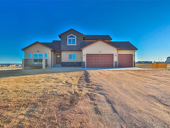 Brand-new custom build with walk-out on over 5 acres with unobstructed Pikes Peak views! This beautiful 2-story has convenient main level living with master & laundry on main. The great room features vaulted ceilings, stone & tile gas fireplace and opens to dining area that walks out to composite deck and those big blue skies. Kitchen with granite counters, stainless steel appliances, breakfast bar and walk-in pantry. Main level is highlighted by hard wood flooring and upgraded light fixtures. Be ready for your holiday celebrations in formal dining room with peak views and sliding French doors. Retreat to your main-level master suite with private deck & gorgeous views, adjoining 5-pc bath with soaking tub, decorative tile and walk-closet. The entertaining and fun continues in large family room basement with walk-out. Great space for guests with additional bedroom and bath. Zoned for horses and allows barns and shops. Experience country living in home with loads of upgrades!
