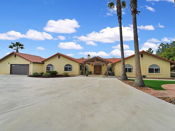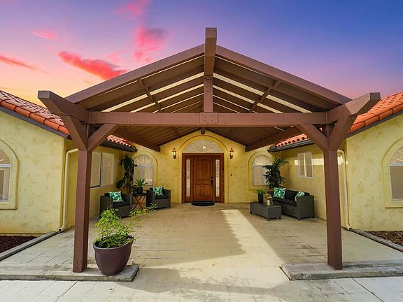 This private ranch style home is nestled on a sprawling lot over 4 acres ... The rolling hills & breathtaking views of this property are amazing... This custom home was built in 1991 & will give you the country lifestyle you've been looking for ... The interior of this home has a spacious foyer with timeless charm ... There are 4 generous size bedrooms, 3 full bathrooms & a powder room...The ensuite bath was updated with granite & tile ...The 2nd full bath was updated with marble & a new tile floor... This incredible home has a large kitchen with granite counters, an additional vegetable sink & lots of counter space ....The beautiful island has even more storage & shelving ... All the stainless steel appliances convey ... The 6 burner stove & the dishwasher are both Jenn-Air appliances ... You'll love having an eat-in kitchen & a formal dining room to host large gatherings ...The private office has French doors & is just off the kitchen ... This home has 2 a/c units ... The game room has a wet bar & an electric fireplace ...The living room fireplace is wood burning ... Surround sound was added to the main bedroom, family room, kitchen, dining room & living room... The washer & dryer are housed in the full size laundry room with a sink... As you drive through the private gates, you will notice the non-skid epoxy resurfaced parking area that's brand new ...There's room for at least 7 vehicles to park in front of the home ... All the walkways & outdoor living space was also resurfaced ... This home is an entertainers dream with 3 covered patios with incredible views ... In the back next to the inground pool is a lovely waterfall... Both the pool & spa are heated with solar & propane ... This home has a 2 car garage attached to the home, plus an additional 2 car garage located behind the home... In 2019 the Spanish roof was retiled ... This property has plenty of room for horses, chickens & farm animals... The mature fruit trees consisting of lemons, limes, oranges, apple, plum, loquat, guava & pomegranate ... There is a watering system for the fruit trees & the bushes Some of the landscaping is low maintenance & has turf... On this 4 acre property, you'll find 2 barns & a storage shed... This property is entirely fenced in... In 2022, the fire sprinkler system was put into the house, both garages & inside each of the furnace closets ... The homeowner also put in a 75 gallon hot water heater ... All of the appliances are included in the sale ... The property has 3 functioning wells, 2 of them are not being used at this time ...This property is on septic... A new electric garage door was put in the 2nd garage ... ADT is the entire home security system with motion detectors ... Did I mention that there are no HOA fees???...