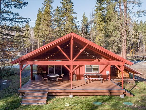 Beautiful and Rare 145' of low bank Wenatchee riverfront looking across at nothing but wilderness in a private setting. This offering includes 1.45 level acres on River Road with a parked out setting and view to the waterfront. Quaint cabin with an open concept and 2 bedrooms on the main floor, fireplace, loft upstairs. Enjoy the amazing covered back deck that allows you to soak in the view and enjoy the outdoors. New 3 bedroom septic in 2012. Upgraded Well. Enjoy this home as it is or complete an addition for future growth.