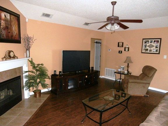 Immaculate, move-in ready home, owners has taken much pride in. Well designed 3/2 plan w/new carpeting in bedrooms and fresh paint throughout, laminate wood flooring in living room, hall, tile in wet areas, foyer and kitchen, range & microwave have been replaced, new stone-like counter tops, hop up breakfast bar, yard has been re-sodded & flower beds added. Enjoy your gas fireplace in the cool months, and fenced in backyard for your privacy. Most importantly easy access to all major roads especially I-10 for Mobile & P'cola. Schools are located close by for your convenience. Nothing needs to be done to this lovely home.
