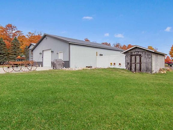 Close to Crystal Mountain and the Betsie River, this ranch-style home built in 2018 rests on 5+ acres. It features 1512 square feet of main floor living with three bedrooms and two full baths. Enjoy quality time with family and friends in this tastefully designed open concept home. Easy-care, durable luxury vinyl plank flooring throughout the home is complemented by carpeted bedrooms, neutral finishes and 2x6 construction. The master suite features a large walk-in closet and a private bath with a dual sink vanity. There are also two additional bedrooms which share the second bath. The 28'x28' two-car garage is connected to the home via a breezeway. Got Up North Toys? The 40x45 pole barn is the perfect "man cave" with a full bath, 200amp service and a 50amp exterior RV connection. The 14x48 RV barn has a 16' ceiling height, 14' door and contains an interior 50amp RV electric connection. The home is professionally landscaped with a large patio and underground sprinklers in the front lawn. Looking for income potential to offset ownership costs? This home is in a Township which allows short term rentals. It will also work well for full-time living as it is located within a 30-45 minute drive to Manistee, Cadillac or Traverse City.