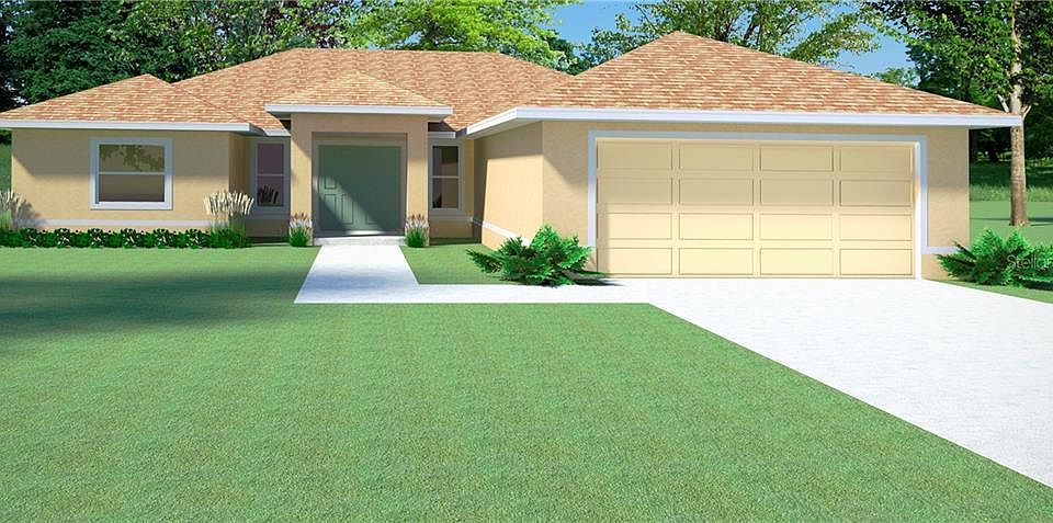 Pre-Construction. To be built. Great time to Custom Build this Hawaii Coastal Casual Design offers 3 bedrooms, 2bath home with outside space for your family Pool or Storage Building. This location is well established, minutes to shopping, entertainment and the area's pristine beaches minutes away. This home features volume ceilings in the spacious family room flowing into the open kitchen. Solid wood cabinets topped in quartz featured on the over-sized island. Entertain in the light-filled dining area or enjoy the privacy of the covered lanai. Overnight guests will be right at home with the split bedroom design and tiled bath. Owners suite with ample room for your favorite reading chair, along with granite dual sinks, tiled shower, and walk-in closet ensure a relaxing retreat. Energy-efficient windows, details are but a few of these Builders' standard features. Showroom appointments available with Builder to customize this forever home. Renderings, Photos, and Furnishings are for Display Purposes Only.