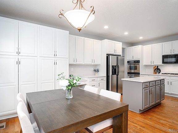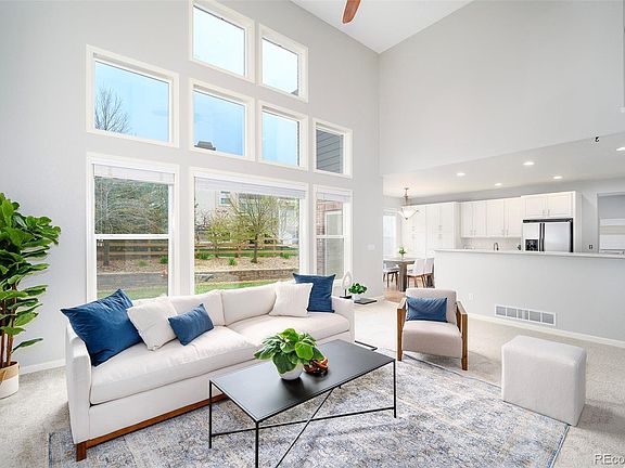 This stunning home is located on a large lot in the coveted Piney Creek Village neighborhood. There's a nearby playground and easy access to trails leading into Cherry Creek State Park. Delight in the convenience of living just off Arapahoe Road and Parker Road putting you minutes from the DTC, Cherry Creek Reservoir, and Lightrail. The incredible two-story foyer opens to a timeless spiral staircase and large scale formal living room, home office, and dining room. Incredible attention to detail and luxury awaits in this open floor plan with impressive ceiling heights and amazing light in every room. The kitchen has a large island, NEW quartz counter tops, double ovens, gas cooktop, and tons of cabinets for storage. From the kitchen, access the expansive back patio to spend your evenings enjoying this quiet neighborhood. Three large planters are ready for your garden this summer. The upstairs primary suite has huge dual walk-in closets and luxury bath with a tub and separate shower. A tankless hot water heater means endless hot water for the entire home. Three additional bedrooms, one with an en suite, and two with walk-in closets complete the upper floor. The unfinished basement has 9ft ceilings and rough-in plumbing, ready for you to personalize. Well maintained with all new paint, carpet, countertops, sinks, and hardware, delight in the chance to own this ready to move-in home.