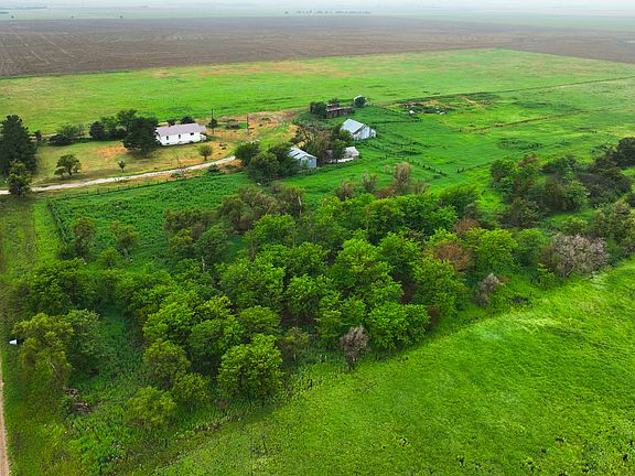 Located less than 9 miles from Ellis, KS, is this pleasant country home and acreage in a quiet area of Trego County. The 2 bedroom, 1 bath home sits on approximately 6 acres along with multiple outbuildings for storage of small equipment and housing livestock. This cozy country home features 960 sq ft of living space on one floor, with a full concrete basement which can be finished out to your liking. The main floor features hardwood floors and great open space flowing from the kitchen to the living room area. The home is powered by a new solar panel unit, water well, and septic system. A mature windbreak on the north boundary provides shade and good shelter from any winter weather conditions.
