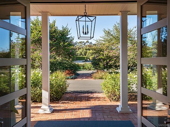 An exceptional Covenant estate on the desirable West Side of Rancho Santa Fe, offering 5.22 private, all-flat usable acres and premier equestrian amenities. Beyond the gated entry and long private driveway, this renovated single-story 4,473 sq ft residence features 5 bedrooms, 3.5 baths, a formal living room with fireplace, formal dining room, office/bonus room, and a spacious primary suite with fireplace, dual dressing rooms, spa bath, and gym. The chef’s kitchen with top-tier appliances opens to a large great room with full bar, fireplace, and a wall of glass leading to an outdoor loggia, saltwater pool with cover, spa, lounging areas, and beautiful mountain views. Equestrian facilities include a 6-stall breezeway barn with caretaker’s apartment (bedroom, bath, full kitchen, separate laundry room, half bath), a Grand Prix jumping arena, on-site trail, grazing areas, turnouts, pastures, and access to the Covenant trail system. A separate 1,774 sq ft guest house above the barn offers 2 bedrooms, 2 full baths, a full chef’s kitchen, living room, and abundant storage. Additional highlights: white oak flooring and custom wood details, marble and stone finishes, brick accents, private well for irrigation, high-speed fiber, and a covered front porch. A rare and special Covenant legacy property offering outstanding lifestyle, privacy, and usability in one of Rancho Santa Fe’s most sought-after locations. An unparalleled offering on the desirable West Side of Rancho Santa Fe’s coveted Covenant, nestled among some of the region’s most iconic estates. This is one of Southern California’s premier equestrian and custom-designed properties—blending timeless Southern California artistry with state-of-the-art amenities across 5.22 rare, private, and entirely flat usable acres. Beyond the gates, lush and exotic landscaping sets the stage for a world-class equestrian haven. The 6-stall breezeway-style barn includes a caretaker’s apartment with bedroom, full bath, full kitchen, separate laundry room, and an additional half bath. The property also offers a Grand Prix jumping arena, on-site trail, grazing areas, turnouts, pastures, and access to the Covenant’s extensive trail system. A long private driveway leads to a gated entry and circular motor court, welcoming you to the recently renovated 4,473 sq ft single-story main residence featuring 5 luxurious bedrooms and 3.5 baths. Inside, enjoy a formal living room with fireplace, a formal dining room, and an office/bonus room. The primary suite showcases a corner brick fireplace, private outdoor patio, dual dressing rooms, a spacious spa bath, and a gym. The chef’s kitchen—with top-tier appliances—flows seamlessly into a grand great room complete with full service bar, fireplace, and an expansive wall of glass that opens to an outdoor living/dining loggia. Outside, a saltwater pool with cover, spa, lounging areas, and glorious mountain views create a resort-style retreat enhanced by refreshing coastal breezes. The separate 1,774 sq ft guest house, located above the barn, offers two bedrooms, two full baths, a full chef’s kitchen, living room, and abundant storage. Every inch of this estate exudes warmth and refined craftsmanship—white oak flooring, rich wood detailing, marble slabs, stonework, and curated tile accents. Additional highlights include a private well for irrigation, high-speed fiber internet, brick detailing, and a charming front entry porch ideal for morning coffee or evening relaxation. A true legacy estate, this property is more than a home—it is a statement of passion, vision, and exceptional lifestyle. A rare Covenant offering designed to be cherished for generations. Experience life and luxury without compromise.